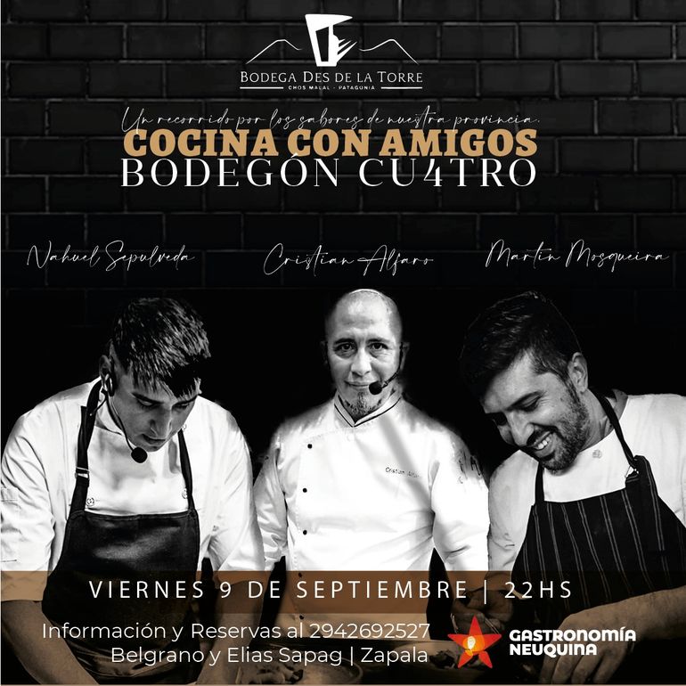 El menú en cuestión será de pasos y regado con vinos de la buena bodega de Chos Malal Desde La Torre.