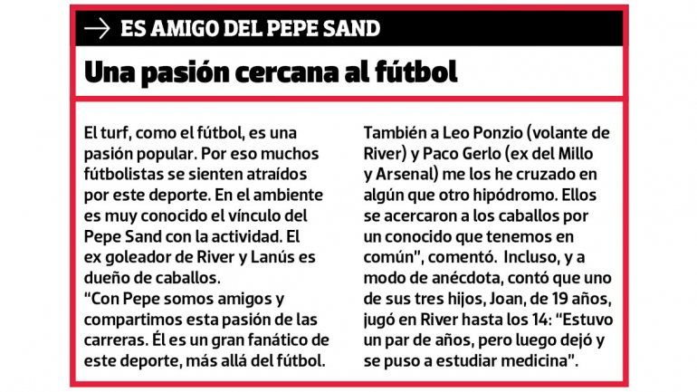 El “Corto” fue un jinete completo cuentan los burreros, pensante para la larga y con rigor, muy buscado para las cortas. Star Runner, con el cual ganó varios premios como el Gran Premio República Argentina, fue el último caballo que lo acompañó hasta que decidió ponerle fin a su carrera hace ya siete años. “Uno ama esto. No hubiese querido dejarlo nunca. Pero el peso me estaba matando. Por este motivo decidí abandonarlo”, afirmó.