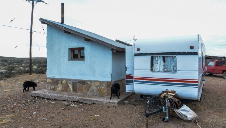Si te detenés en la tranquera, observás la casilla junto a dos pequeñas estructuras de cemento de 4 metros cuadrados. Una es el dormitorio y la otra la cocina-comedor. Sin pasillo, ni techos. Para ir de la cocina al baño, tiene que salir a la intemperie.