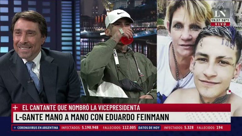 L-Gante es el personaje del momento, en los últimos días desfiló por cuanto programa de televisión, tanto de espectáculo como de político, haya. Estuvo con ShowMatch, La Academia donde cantó especialmente a pedido de Marcelo Tinelli, pasó por “Polémica en el Bar” y este miércoles le brindó una entrevista a Eduardo Feinmann en su programa de LN+.