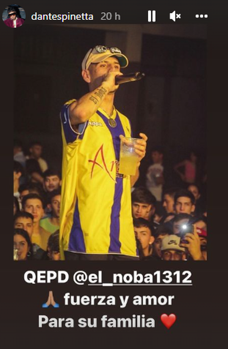 Además de L-Gante, muchos artistas y famosos expresaron su dolor y condolencias a la familia de “EL Noba”, uno de ellos fue Dante Spinetta, que utilizó sus redes sociales para dedicarle unas palabras al representante de la cumbia 420 y mandó "fuerza y amor para su familia".
