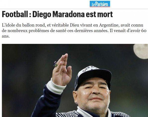 En tanto, el portal de Le Monde, así despidió al Diego: "La muerte de un campeón es siempre un acontecimiento triste. El de "Pibe de Oro", como siguió llamándolo Argentina, suscitará profundos antagonismos entre los aficionados al fútbol. Pocos deportistas como él habrán alimentado con tanto celo los dos focos opuestos del apoyo de la adulación y el odio. El autor de la "mano de Dios", el protegido de la mafia napolitana, el amigo de Fidel Castro y Hugo Chávez, el adicto a la cocaína incurable no fue monaguillo ni modelo de virtud, ni mucho menos".