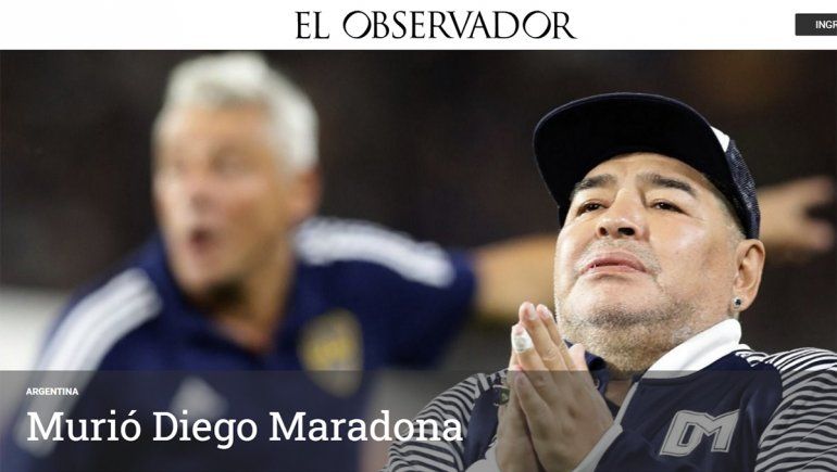 El dolor por la muerte de Diego también fue expresado por los medios de Italia, Francia, Uruguay, entre otros, como son El Observador, Le Parisien, La Gazzetta.