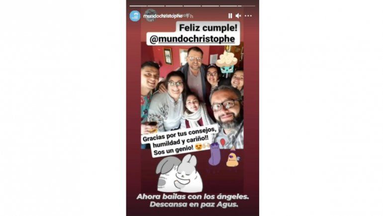 En tanto, el cocinero que actualmente integra el staff de Lo de Mariana, recordó un posteo que le había dedicado Agustina por el día de su cumpleaños agradecido sus "consejos, humildad y cariño". "Ahora bailas con los ángeles. Descansa en paz", escribió Christophe en una historia de Instagram.