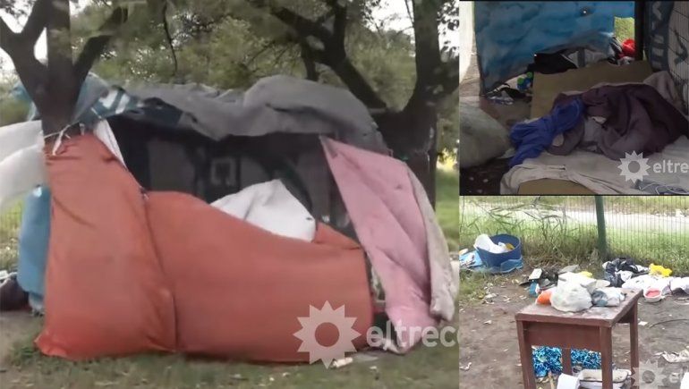 En tanto, en el exterior de esa carpa, la mujer y la niña guardaban sus alimentos y los utensilios en una pequeña mesa que está a la intemperie.