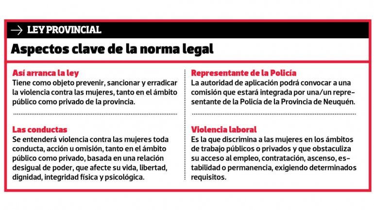 La ley de violencia contra las mujeres advierte que se contemplan tanto las instituciones públicas como privadas y todos los tipos de violencia. En la ley no hay apartado ni letra chica que aclare que las mujeres que están dentro de la Policía no están incluidas.