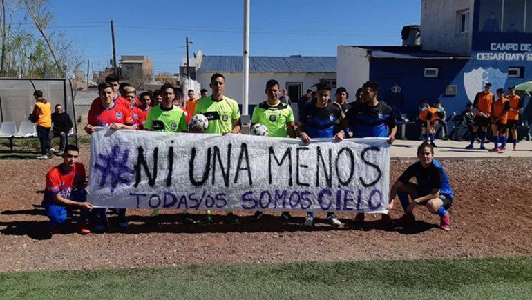 "Ni una menos", rezaba la bandera, el ejemplar mensaje de estas dos instituciones y del fútbol regional en sí, dolorido como todos los vecinos por el atroz crimen, ocurrido hace una semana en Plottier. La gente de Los Canales vivió de cerca el drama y sus eternos rivales no se mostraron indiferentes al terrible e indignante suceso.