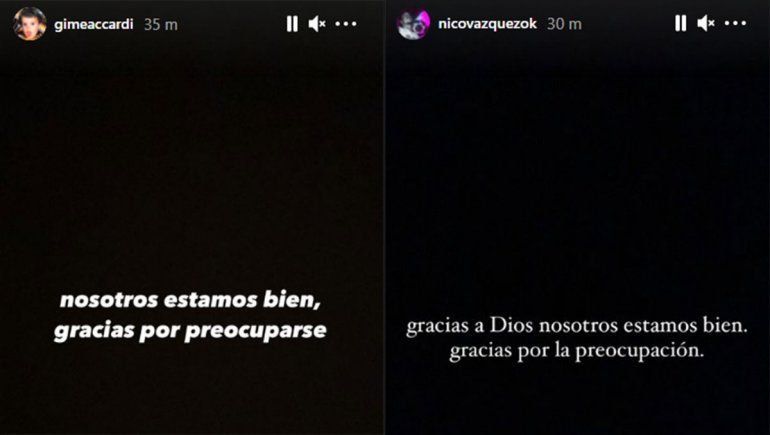 En su largo mensaje, Gimena Accardi también reflexionó sobre la suerte que corrieron, “agradezco estar vivos, sé que un batallón de ángeles nos protegieron, porque no era nuestro momento, todavía nos queda mucho por hacer en este plano. Gracias a ustedes por los mensajes amorosos. Estamos como se puede estar en una situación así”, expresó, sensibilizada.