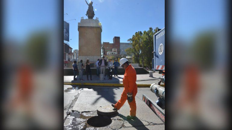 "Había una pérdida de agua frente y quisimos ver si era un problema de desborde cloacal o alguna cañería rota. Abrimos la tapa de la boca de registro y nos encontramos con que había una cañería clandestina desde la fuente del monumento a San Martín que descarga directamente en nuestra red", explicó el gerente de General del sector Redes del Epas, Eduardo Vidal.
