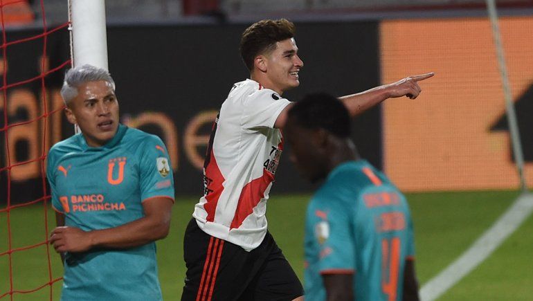 Sólo 7 más tarde, en un corte de Enzo Pérez en mitad de cancha, salió el ataque veloz que profundizó Santos Borré. Gran control de Álvarez que terminó resolviendo levantando la pelota con la punta del pie ante el achique desesperado del 1 visitante.