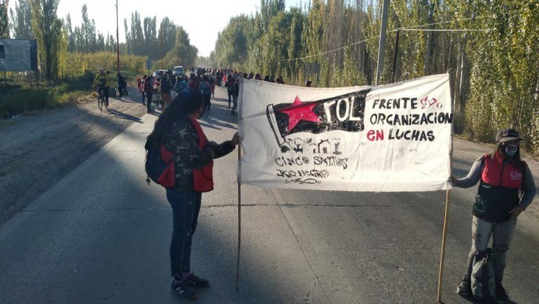 Bajo la consigna “¡Sin trabajo, sin vacunas y sin alimentos no se aguanta más!”, un grupo de unos 50 manifestantes se apostó, a partir de las 9,30, a unos cien metros de la Policía Caminera de la vecina provincia de Río Negro.