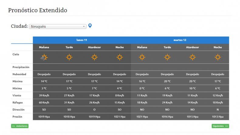 Para el viernes está pronosticado un grado de mínima y 15 de máxima, en la previa de la mañana más fría de la semana, ya que el sábado amanecerá con cuatro grados bajo cero. Luego la temperatura irá subiendo hasta llegar a los 17 grados, anticiparon los expertos en Meteorología de la AIC.