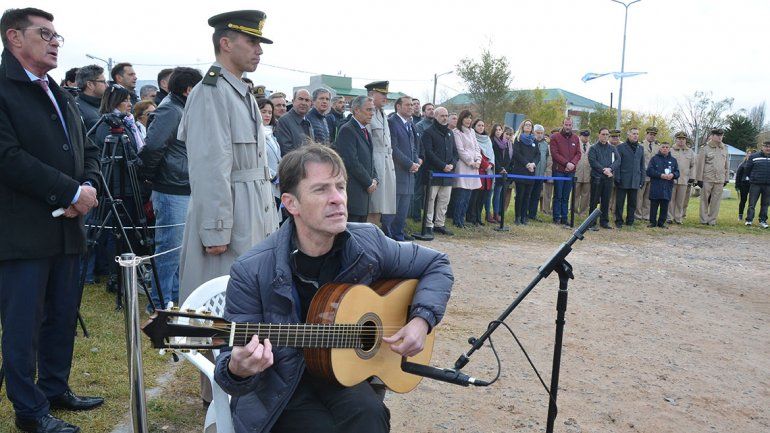 Ante una concurrida asistencia, integrada por vecinos, ex combatientes de Malvinas, funcionarios municipales y provinciales y con la participación del Regimiento de Montaña VI, se llevó a cabo el acto encabezado por el gobernador Omar Gutiérrez y el intendente de la ciudad, Horacio Quiroga.