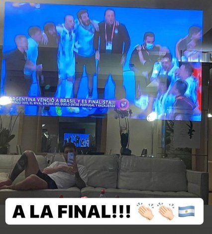 El crack rosarino Lionel Messi celebró el triunfo histórico del equipo nacional. "A la final!!!", escribió Messi en una historia de la red social Instagram acompañado de aplausos y la bandera argentina en forma de emojis. Ángel Di María, se sumó al "aguante" y también publicó un video.