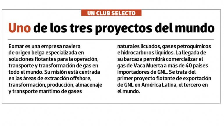 El acuerdo entre YPF y Exmar comenzó a tejerse en agosto pasado. Es decir, se cerró de forma rápida, en un contexto en el que hay actores del sector que vaticinan que en el invierno la capacidad de transporte desde Vaca Muerta podría quedar agotada. Es uno de los tres barcos que hay en el Mundo con esta capacidad de tratamiento. Se trata de una nave nueva, cuyo destino era Colombia, ya que iba a ser utilizada en una operación similar en el Caribe. Finalmente, la caída de ese proyecto hizo posible la disponibilidad del barco que ahora pasará a procesar el gas neuquino. Esta semana se encontraba en China, y se espera que entre en funcionamiento hacia el segundo trimestre del año próximo.