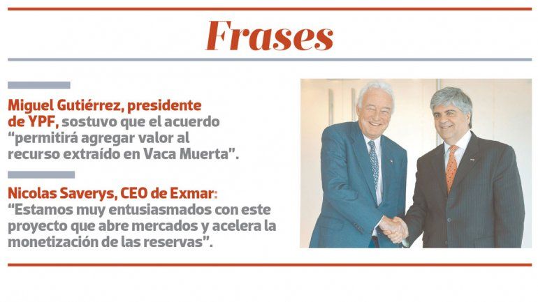 YPF aspira a consolidar una producción tratada de unas 500.000 toneladas por año de gas, a partir de una inversión del orden de los u$s 20 millones. Esto implicaría exportaciones potenciales por unos u$s 200 millones por año.