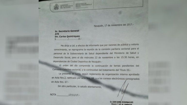 El secretario gremial de ATE, Carlos Quintriqueo, sostuvo que "el Gobierno no quiere dialogar ya que plantean excusas y nunca hicieron propuesta". Y agregó: "Vamos a ir mañana, pasado, el lunes para dialogar".