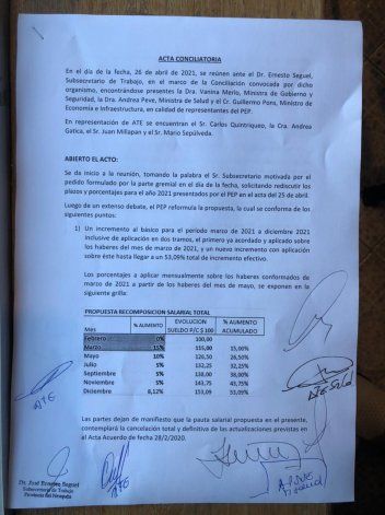 El gobierno comprometió también que el monto no remunerativo de 3500 pesos acordado en febrero se siga pagando hasta los haberes de agosto, para los agentes que cobran salarios iguales o inferiores a 55 mil pesos netos.
