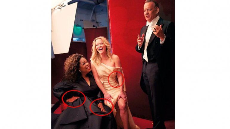 La tan esperada foto fue tomada por Annie Leibovitz y se hizo viral en muy pocas horas debido a un grosero error en el uso del famosos editor de imágenes que hizo que la actriz Reese Witherspoon tuviese tres piernas en la foto que se usó para la tapa y la reconocida Oprah Winfrey apareciera con tres manos.