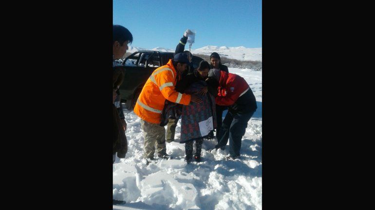 Personal de Salud, Bomberos y de Defensa Civil acudió al llamado y pudieron ingresar a la zona, distante a unos 45 kilómetros de Junín, en vehículos 4x4 bajo 60 centímetros de nieve.