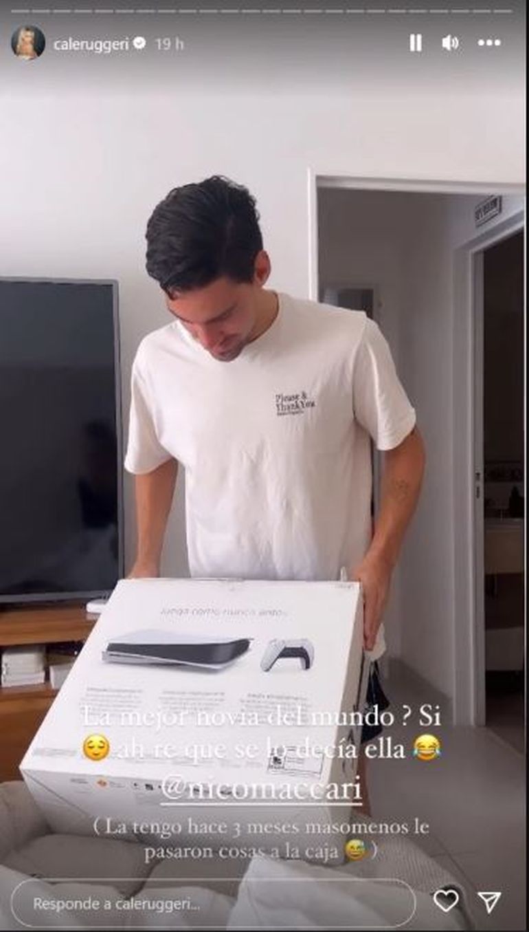 "¿Soy la mejor novia del mundo? El regalo lo tengo hace tres meses más o menos, se va a morir", relató Cande, antes de llamar a su novio. "Me estás cargando, la tenías acá, estás loquísima. Voy a tener que empezar a jugar a la Play a los 31, flashé parto", dijo Nico, muy contento por el presente.