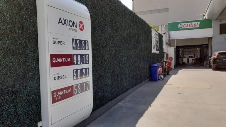 En las estaciones Axion, el litro de súper está a $ 42,88 mientras que la versión premiun alcanza los 49,19 pesos. El gasoil está a 50,29 pesos mientras que el gasoil Quamtiun cuesta $ 58,17.