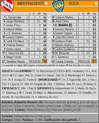 En ese partido inicial el Rojo dirigido por Osvaldo Piazza formó con L. Fernández; Martínez, Zelaye, Páez, Ramírez; Galván, Avila (Bustos), Pacheco, Víctor Lopez (Manrique); Francisco Guerrero (Vuoso) y Forlán (Amaya).