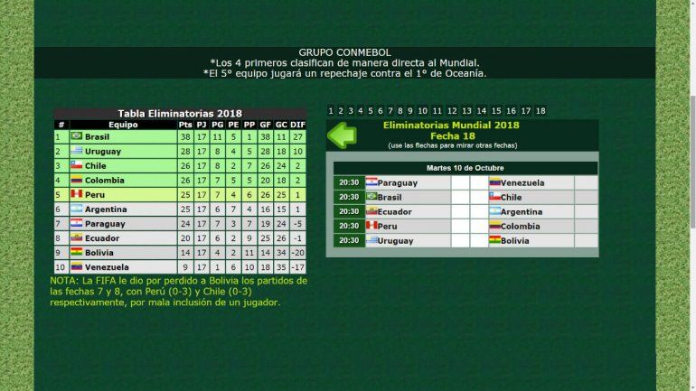 Con este resultado, más la victoria de Chile frente a Ecuador y el triunfo de Paraguay a Colombia, la Selección nacional está fuera del próximo Mundial ya que queda en la sexta posición.