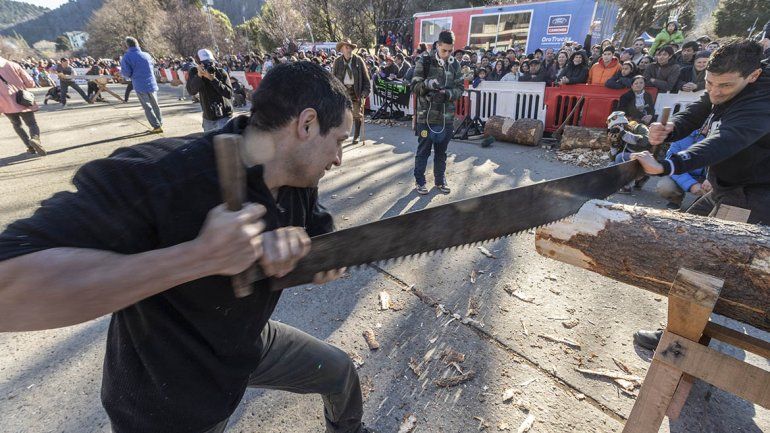 El concurso de hacheros se llevó ayer las miradas de todos los turistas que pasaron por San Martín de los Andes y que vivieron parte de la tradicional Fiesta del Montañés.