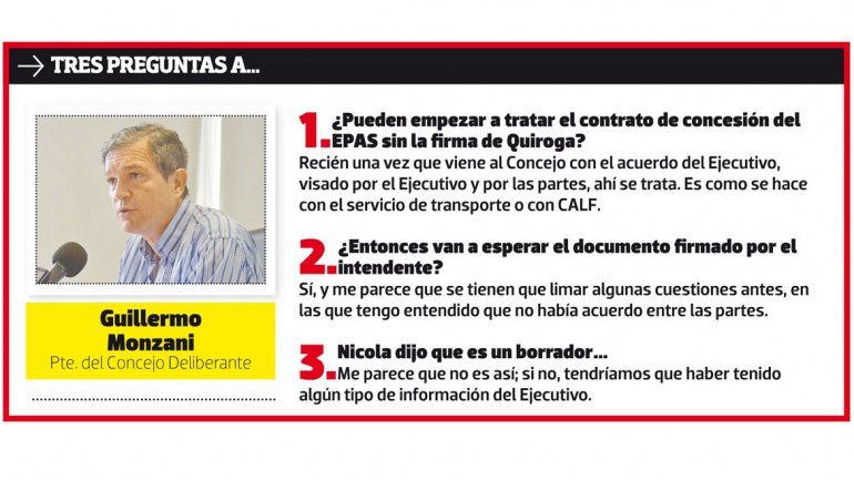 Antes de retirarse del Concejo, Nicola advirtió que el contrato debería sancionarse este año y que si Quiroga no se decide a poner su rúbrica, “va a seguir incumpliendo las ordenanzas, pero la verdad es que ya no tiene excusas para no firmarlo”.