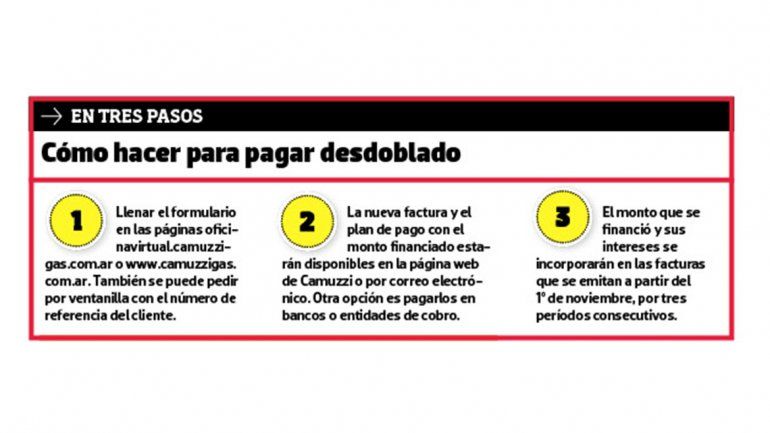 El monto de la prórroga se cancelará en cuotas entre noviembre y abril, como un adicional en las facturas que lleguen durante esos seis meses. En esa época del año, el consumo de gas es menor, con lo cual se compensa en el monto a pagar al añadido del costo del invierno.