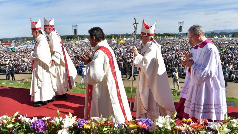 La alusión al pueblo mapuche fue una marca distintiva de la ceremonia. Desde el saludo inicial, Francisco sorprendió al público con un “Mari mari” (buen día, en mapudungún), que cosechó un fuerte aplauso de la multitud.