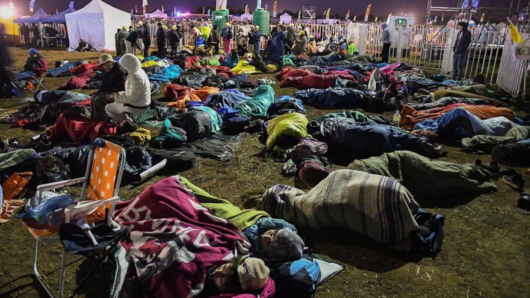 En ese contexto, un playón de cemento o el pasto algo húmedo por el rocío de la madrugada servían para improvisar un campamento. Para amenizar la espera, algunos grupos católicos de rock y cumbias muy pegadizas animaron al público. La fría madrugada no opacó la celebración de la misa, que se realizó con sol a pleno, el mismo que invadió los rostros de los peregrinos al retirarse del lugar al mediodía.