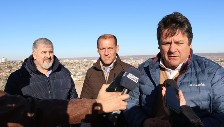 El gobernador Omar Gutiérrez participó de la recorrida por la zona de obra junto al jefe comunal y colaboradores. Al referirse a Gaido dijo que “está levantando una nueva ciudad”.