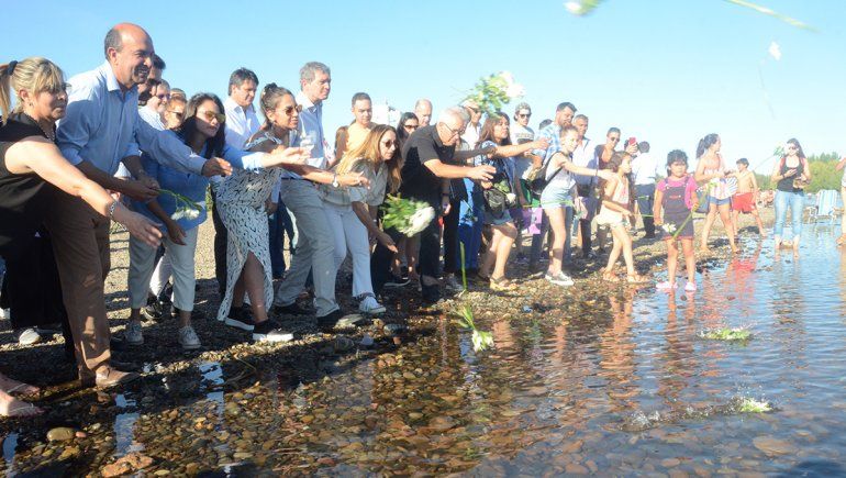 En el cierre , todos los presentes en silencio y bajo la melodía entonada por la orquesta Estación Patagonia, arrojaron al rio Limay claveles blancos recordando de esta manera al hombre que cambio la historia de la capital neuquina.