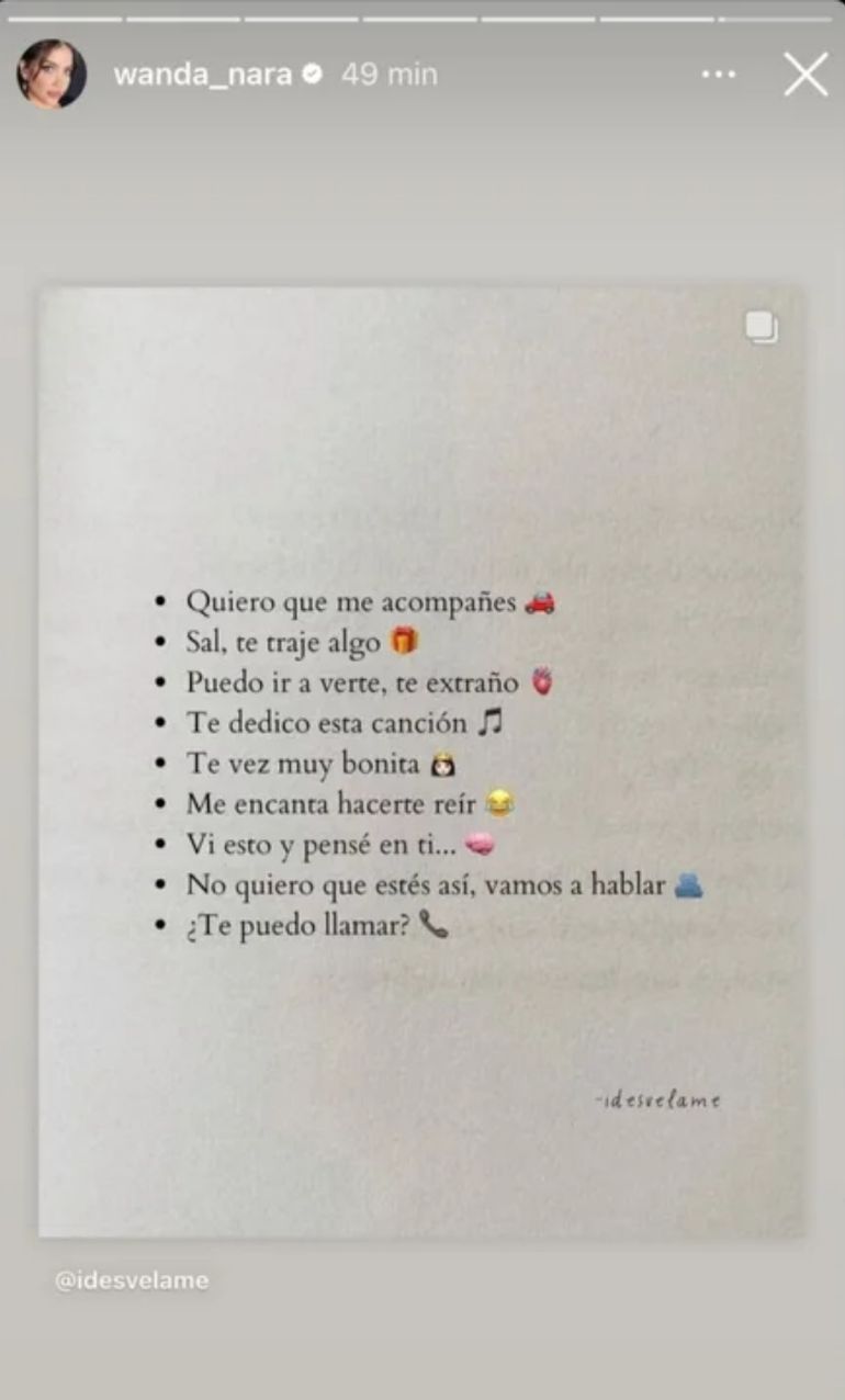 Sin embargo, lo que realmente generó revuelo fue la segunda historia que publicó Wanda, donde detallaba los nueve requisitos que un hombre debe cumplir para poder entrar en su vida. Las pretensiones de la empresaria incluyen aspectos que reflejan no solo atención y cuidado, sino también gestos románticos y disposición para el diálogo.