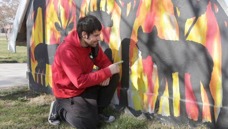 “Noté que en Centenario había muchas paredes manchadas, con pegatinas de políticos o con pintadas que ensuciaban la ciudad”, explicó el joven artista. Para borrar esos trazos desagradables, se decidió a pintar murales con mensajes comprometidos, que fue replicando por toda la ciudad.
