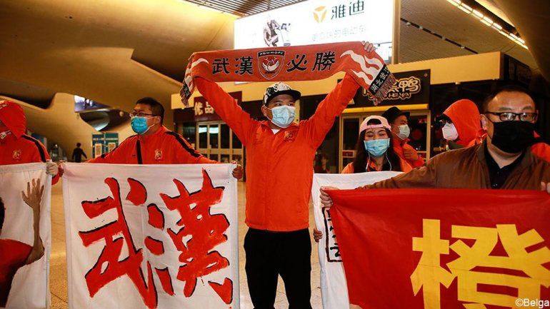 Anoche, un tren de alta velocidad de Guangzhou a Wuhan llevó a los jugadores a casa. Ahora que las medidas se han relajado, los futbolistas que regresaron recibieron flores de los seguidores vestidos de naranja, el color del club. Todos llevaban barbijos.