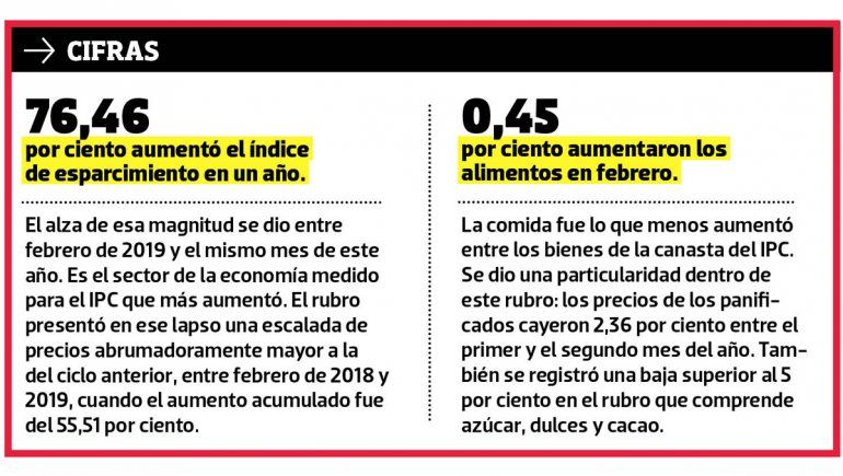 En términos anuales, esta variable de la canasta del IPC acumuló un aumento del 56,8 por ciento entre febrero de 2019 y de 2020. Ese porcentaje es menor que el de la suba del periodo igual anterior. Entre el mismo mes de 2018 y 2019 había registrado un salto del 62,4 por ciento.
