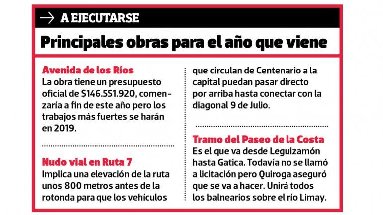 Entre las ya licitadas figura la Avenida de los dos Ríos, mientras que el nudo vial de Doctor Ramón y Ruta 7 frente al Coto y la extensión del Paseo de la Costa desde Leguizamón hasta Gatica están en ese proceso.
