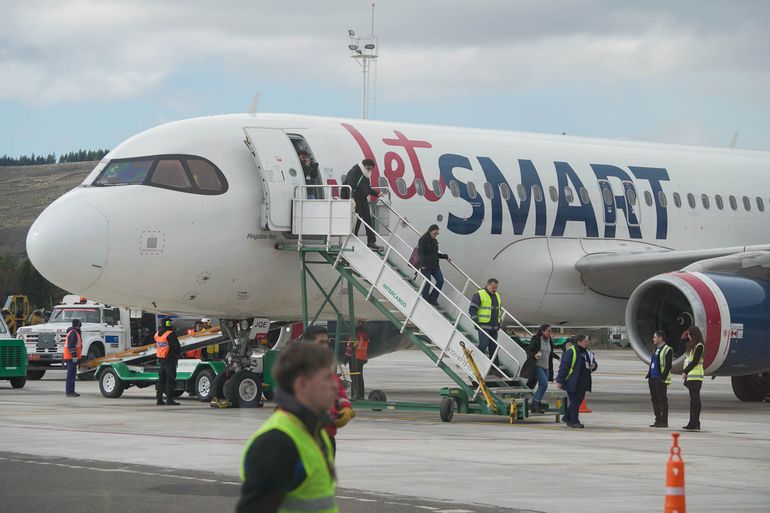La aerolínea low cost JetSmart comenzó este lunes con el servicio de sus vuelos regulares entre Buenos Aires y San Martín de los Andes. El primer arribo fue recibido por el gobernador Omar Gutiérrez junto con el ministro de Turismo, Sandro Badilla, e intendentes de la región.