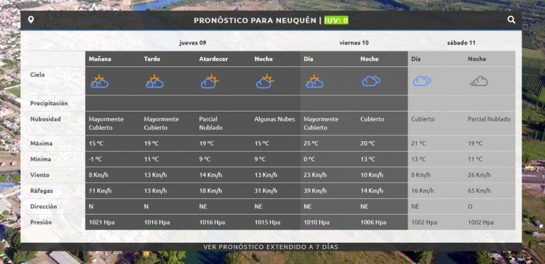 Para el viernes el pronóstico anticipa un notable ascenso de la temperatura, como un preludio de la primavera. Se prevé que la máxima alcance los 25 grados mientras que la mínima estará en los cero grados. Se repite las condiciones climáticas de mañanas frías y tardes cálidas.