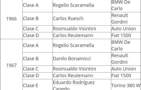 Aquí la parte del historial de campeones que demuestra el recordado "bi" del Lole, que luego se proyectó al automovilismo internacional y que de haber continuado en la categoría seguro hubiese agrandado su palmarés.