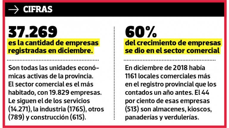 En diciembre, el dato central a partir del que se pueden desprender los números para cada sector indicó que en la provincia se contaban 1962 empresas más que el mismo mes del año anterior