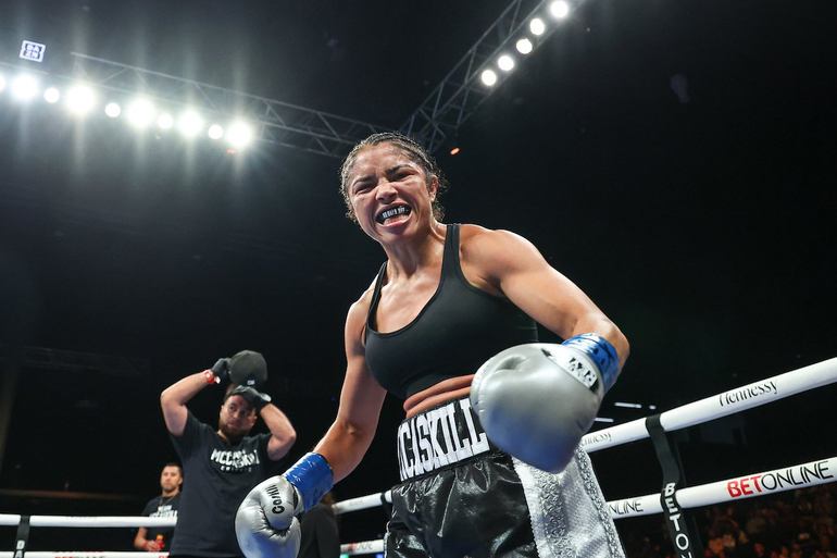 La velada boxística se llevó a cabo este sábado por la noche en San Antonio, Texas. La peleadora azteca subió al ring dispuesta a cortar la racha de McCaskill, quien tiene en su poder los cuatro principales títulos mundiales en la división welter – pero a los diez segundos del cuarto round el combate se detuvo.