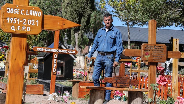 "Terminábamos de enterrar a uno y ya teníamos que preparar otra fosa, he recibido matrimonios que murieron por COVID el mismo día", relata sobre los momentos más apremiantes de la pandemia, en un clima de dolor que también generaba tensiones entre las familias. "Los teníamos que enterrar solos, pero a veces saltaban y se te metían, y los tenías que dejar estar", señala sobre las restricciones sanitarias, que se volvían imposibles de cumplir cuando el peso de la muerte ya dolía demasiado.
