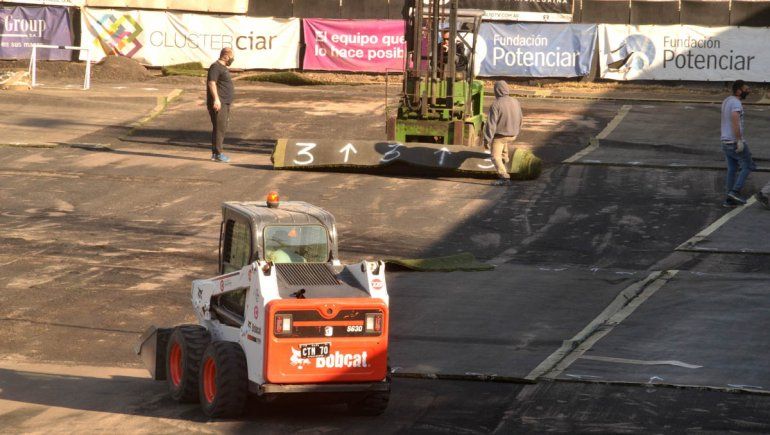 Este lunes, personal de la comuna terminó con la mudanza de los rollos. Luego del trabajo de compactación de suelo habrá que colocarla, pero de esta manera aspiran a tener en un mismo espacio el gimnasio, la pista (con sus propios vestuarios) y la cancha de fútbol con utilería.