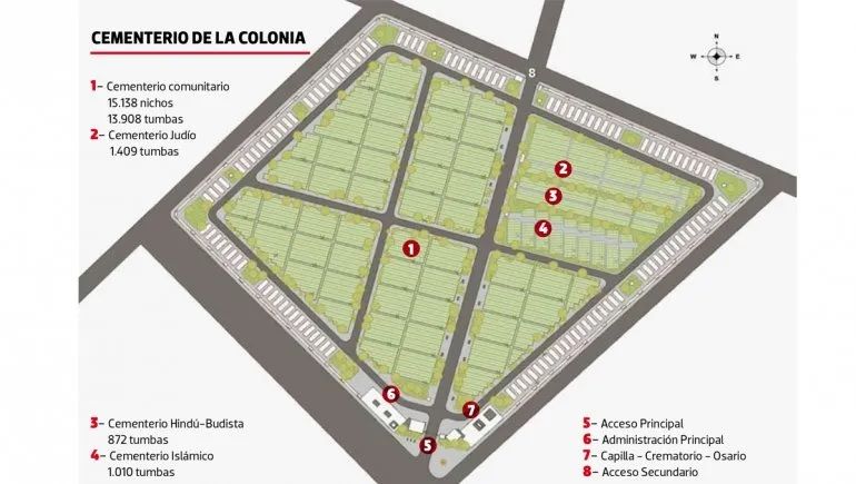 Según adelantó Martínez en junio del 2020, la tercera necrópolis también se destacará de las antecesoras al albergar todos los credos en espacios diferenciados, respetando las distintas culturas religiosas. Una hectárea será destinada para las personas judías, otra para musulmanes, otra para hindúes y cuatro para quienes profesan la religión católica.