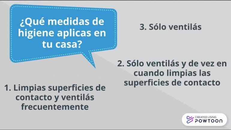 El test propone una serie de preguntas como dónde estuviste este fin de semana, si fuiste a la casa de algún conocido o a un bar, si saliste a comprar o hacer trámites y, al regresar, si te cambiaste de ropa y te lavaste las manos. También indaga en las medidas de higiene que aplicás en tu casa y al circular por la vía pública.