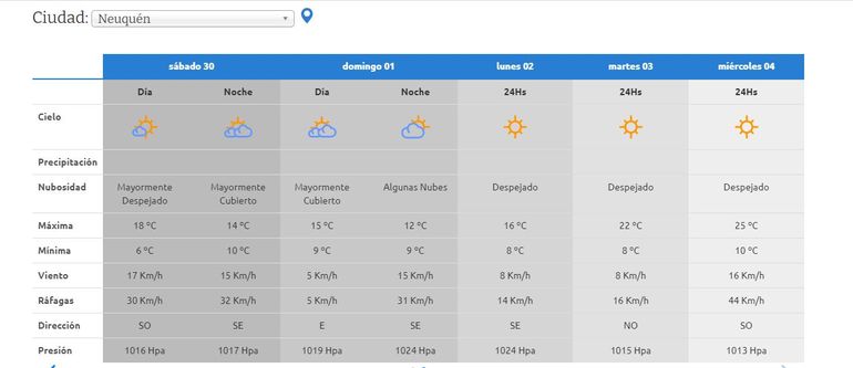 Se mantendrán las condiciones climáticas para el inicio del fin de semana. Estará algo nublado durante el día con un leve ascenso de la temperatura. La máxima estará en los 17 grados y la mínima en los 3 grados, y por la noche estará mayormente cubierto con una máxima que descenderá a los 14 grados y una mínima de 6 grados. El viento será leve de 29 kilómetros por hora, con ráfagas de 49 kilómetros por hora.